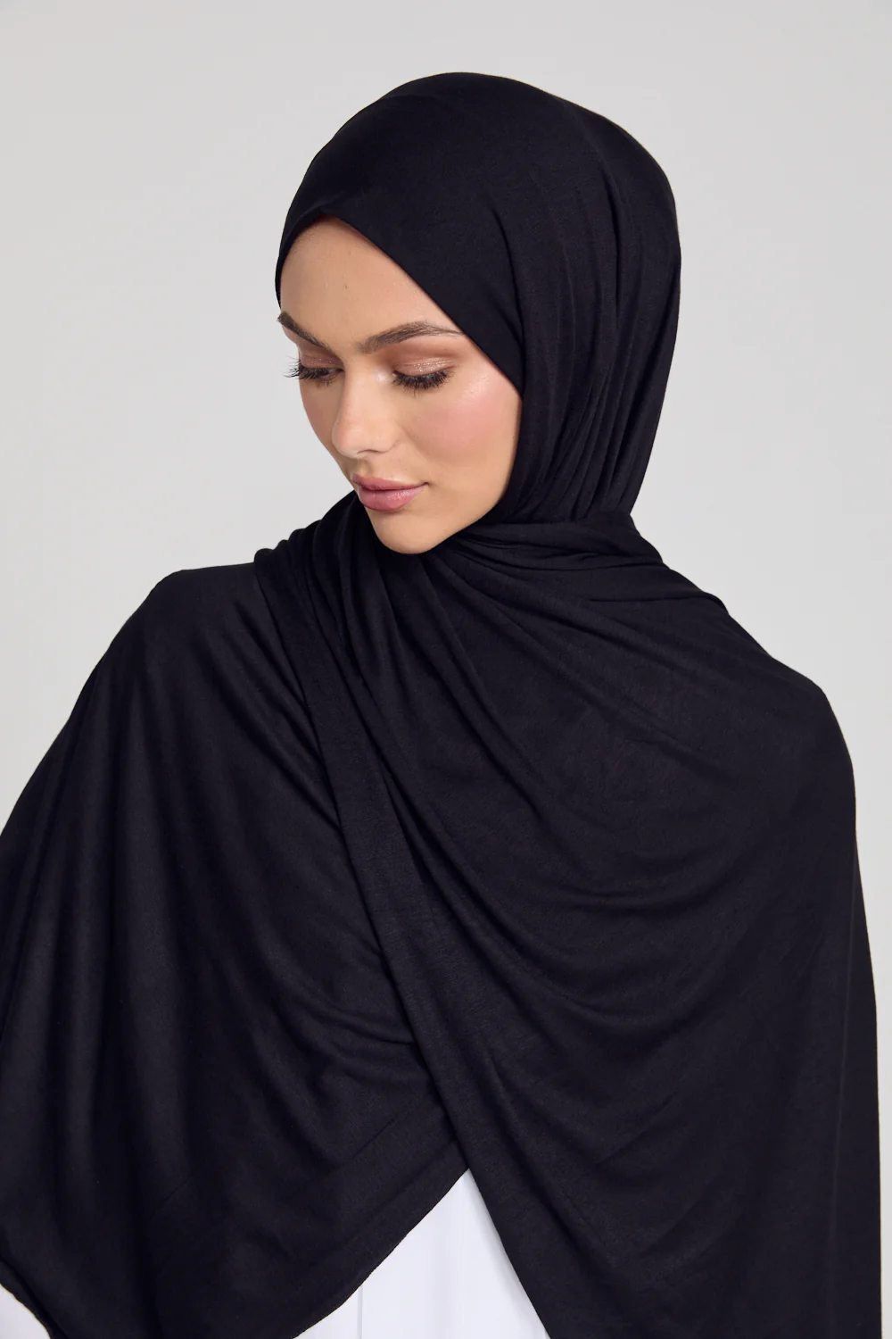 Black Jersey Hijab: Plain Black Viscose & Lycra Jersey Hijab
