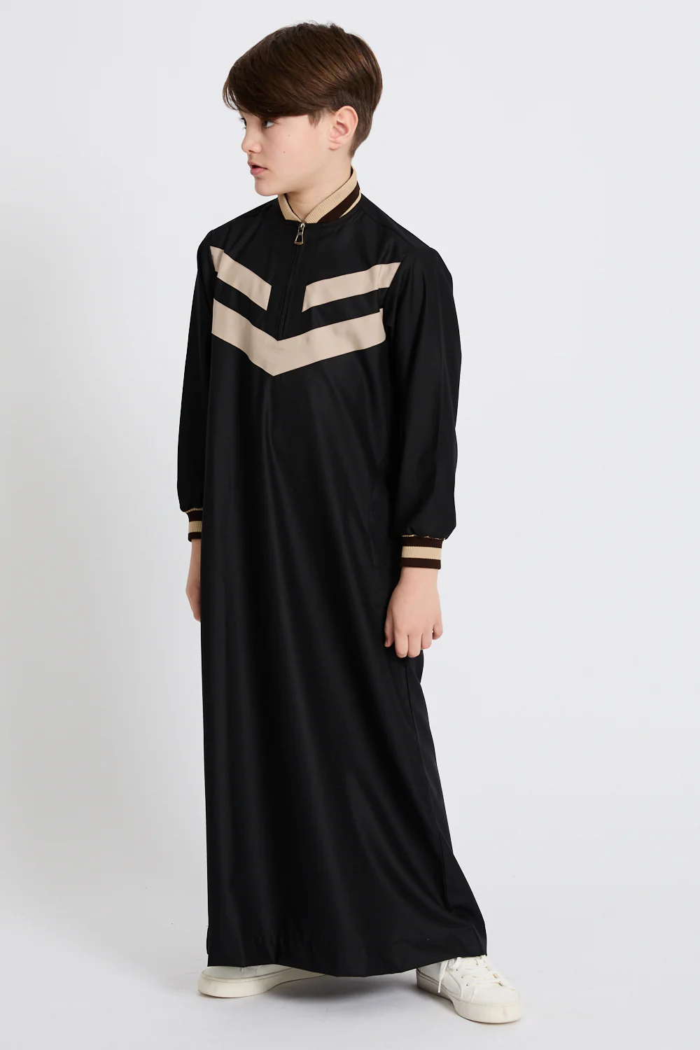 Junior Boys Premium Soft Ribbed Collar Thobe - Black & Nude