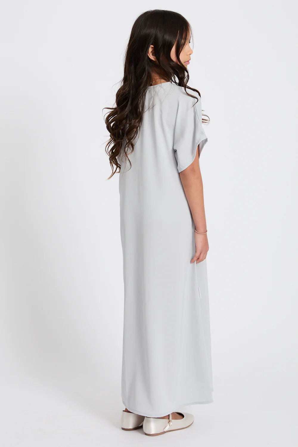 The Junior Girls Premium Nidha Inner Slip Dress in Pearl Grey is the ideal piece for layering under our open abayas. Made from soft, breathable Nidha fabric, this slip provides comfort, modesty, and a smooth, flattering fit.