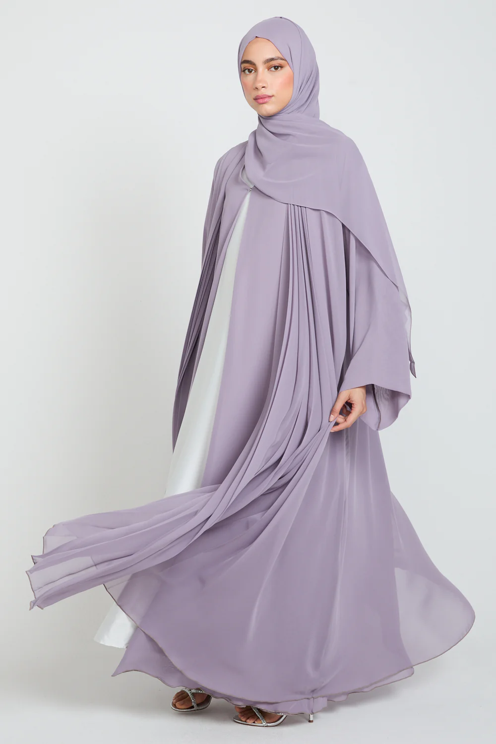 Luxury Chiffon Open Abaya with Pleated Detailing - Royal Lilac