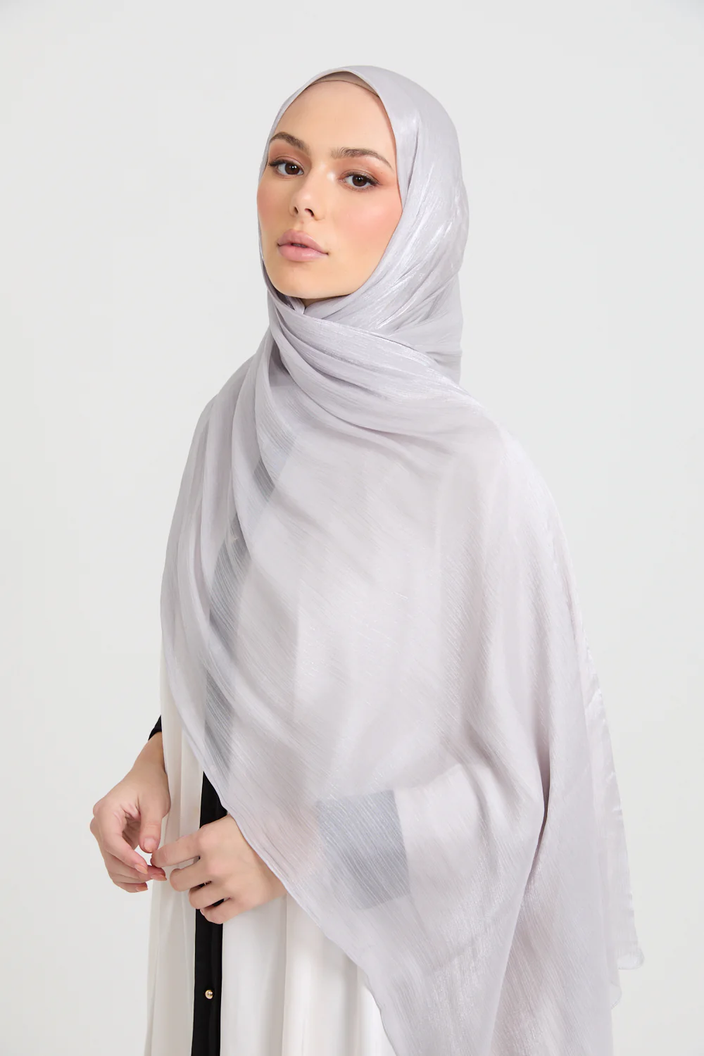 The Luxury Organza Hijab in Silver Mist embodies understated glamour with a modern, graceful touch. Crafted from lightweight, semi-sheer organza, it drapes beautifully with a soft, structured flow and a luminous sheen that catches the light effortlessly.