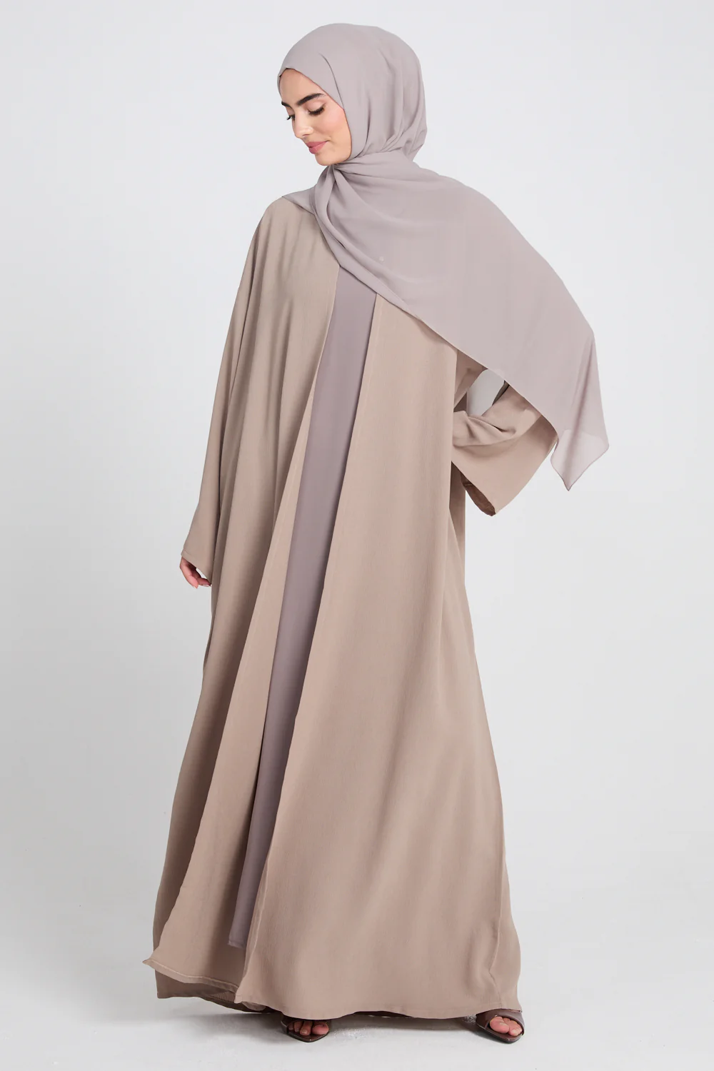 Introducing the Premium Classic Linen Blend Open Abaya in Soft Truffle. A beautifully balanced blend of style, breathability, and timeless design. Crafted from a lightweight linen blend, this abaya is ideal for warmer weather, offering exceptional comfort while maintaining a polished, graceful silhouette.